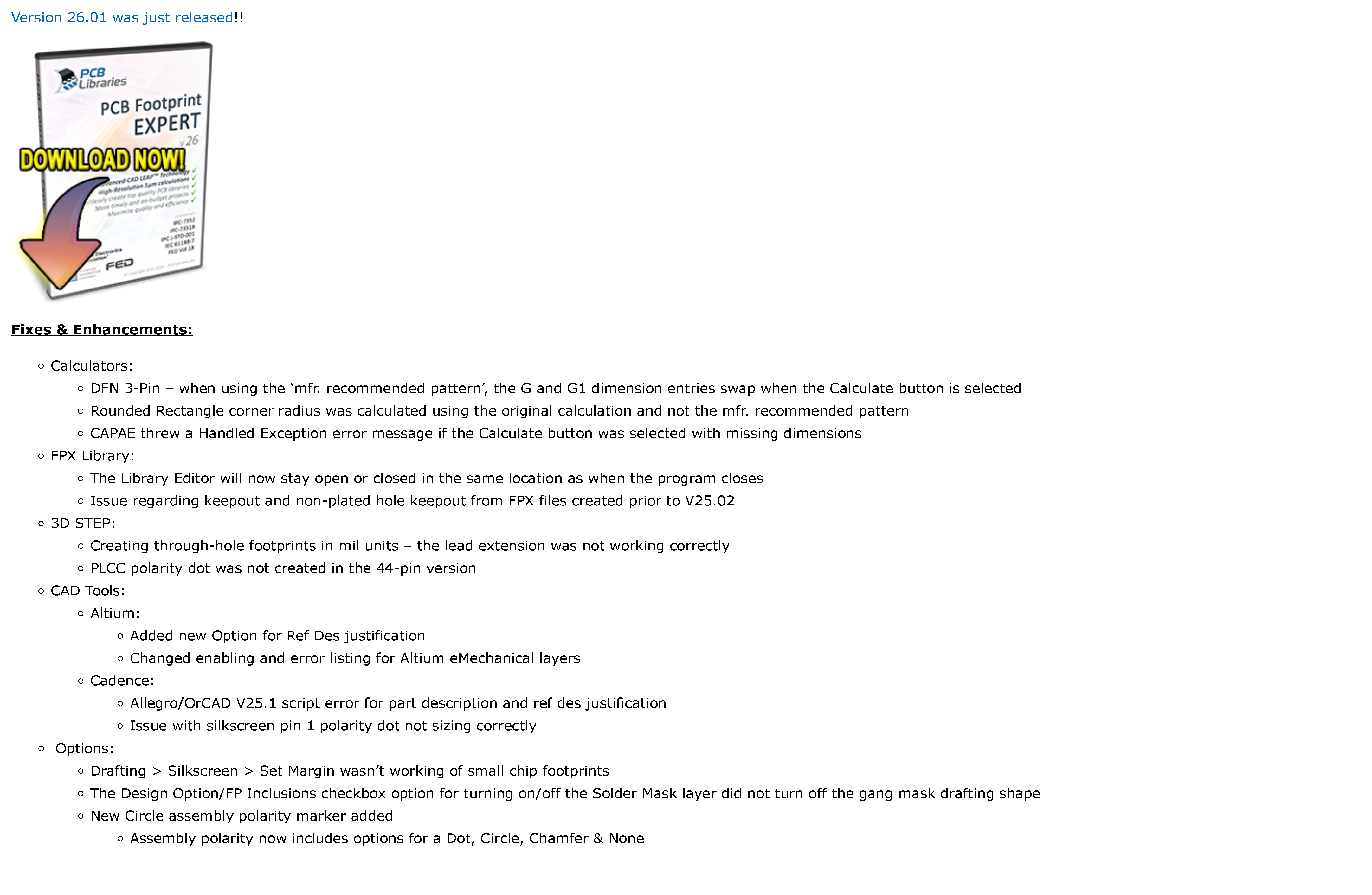Mit der Veröffentlichung der neuen PCB Footprint Expert Software sind neben funktionalen Neuheiten ebenfalls Aktualisierungen für den User Guide umgesetzt worden. Des Weiteren wurden etliche neue Erklärungsvideos erstellt, welche die Funktionen und Dienstleistungen im Detail erläutern. Eine genaue Auflistung über alle Änderungen und Neuerungen der der Versionen ist in den Changelogs zu finden. Diese werden stets in dem sehr aktiven Forum des Herstellers für jeden neuen Patch erweitert. Die Aktualisierungen der User Guides sind sowohl in dem Handbuch innerhalb der Software als auch in dem Online-Handbuch auf der Webseite zu finden.